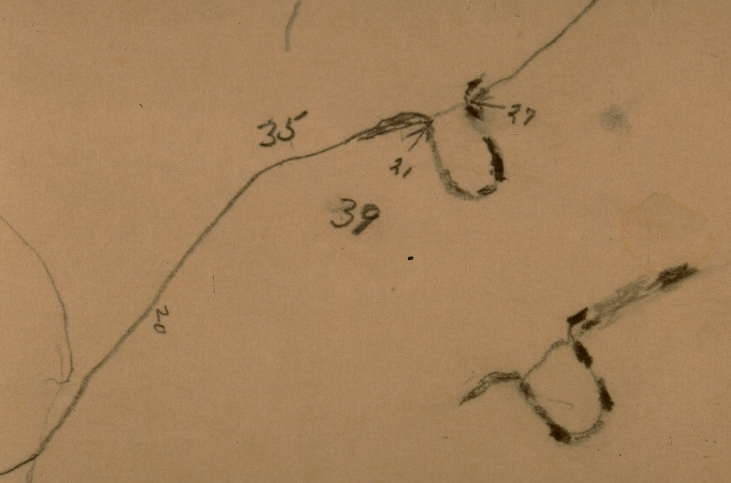 Deficiency loop chromosome 1L: Photo of a camera lucida drawing of a pachytene preparation of a microsporophyte nucleus carrying a chromosome 1 long arm with a heterozygous deficiency that includes the Bz2 locus. Cytological evidence established location of bz2 on chromosome 2 long arm.